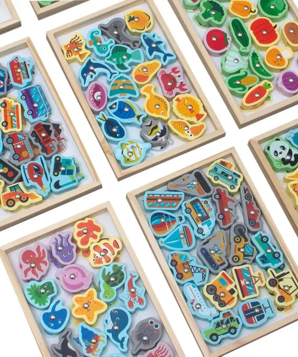 3 in1 magnetic board with 3d pieces- fishing, educational placing and learning, lacing