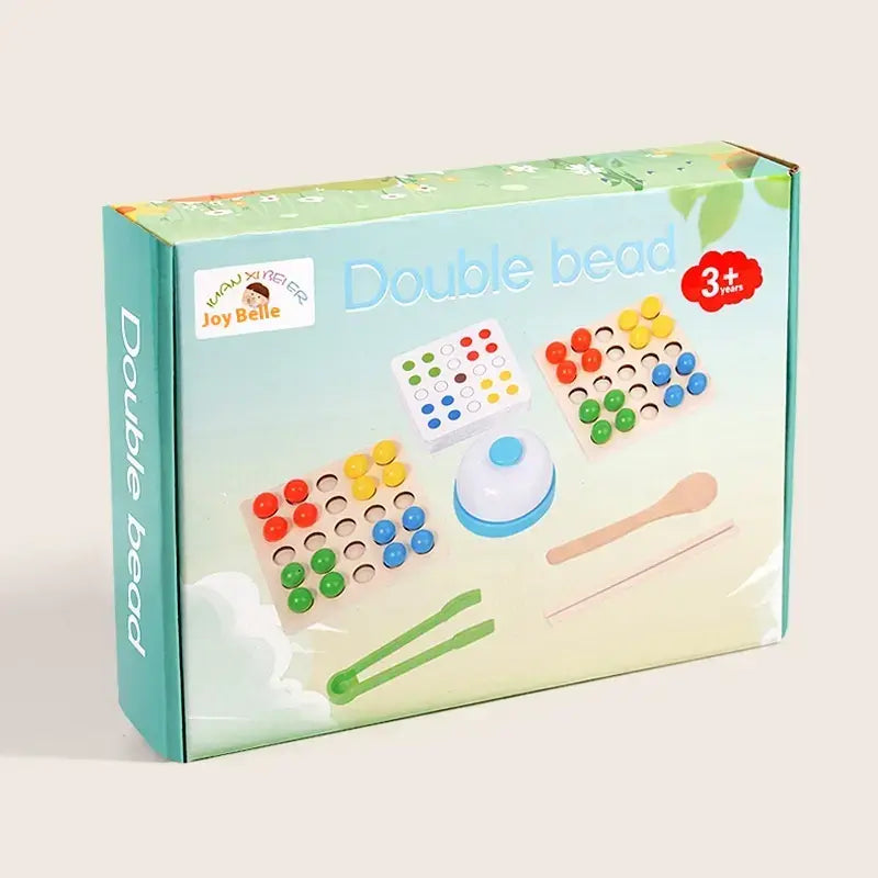 🎯 A fun twist on color sorting! The Double Bead Game 🎨 challenges kids to match pattern cards using 🥢 chopsticks, 🥄 spoon, or ✂️ tongs—boosting fine motor skills, 🤲 hand-eye coordination, and 🧠 concentration. With vibrant wooden beads 🟡🔴🟣🟢 and a cute buzzer 🔔 for game-style fun, it encourages 👥 turn-taking, 🧩 memory, and quick thinking. Perfect for solo play or competitive rounds with friends or parents 👨👩👧. Great for kids 3️⃣+ to build 🧘 patience and 🎨 color recognition while having a blast! 😄