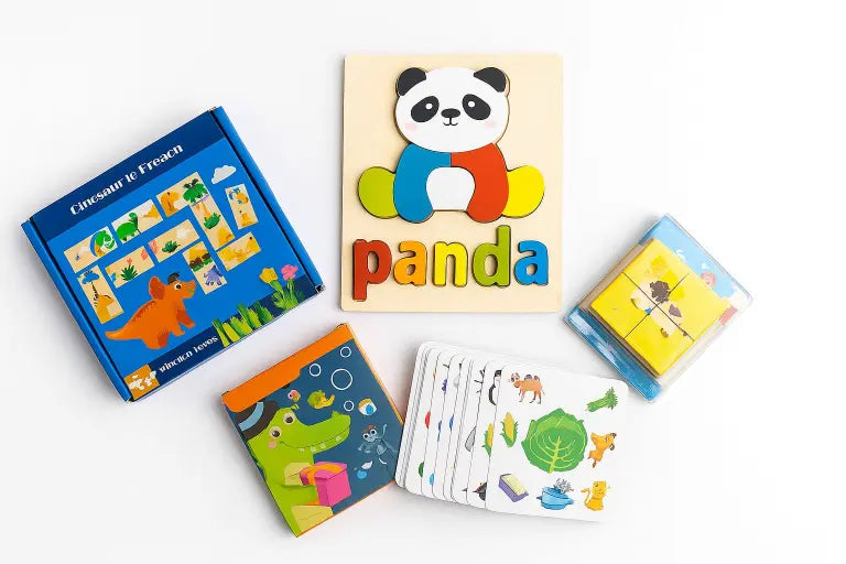 🧩 Fun Learning Combo – Wooden Puzzles & Flashcards Set